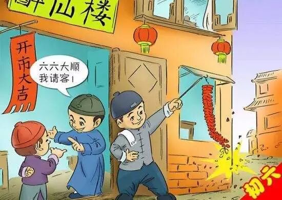 按照汉族习俗,正月初六是店铺开张的日子,鞭炮齐鸣象征着今年生意会红红火火,伙计们都猛劲地摇算盘,用秤杆敲打秤盘,屋里屋外响成一片,谓之“响响当当,大吉大利”。这天大小店铺都露出了早已贴好的“开市大吉,万事亨通”的红对联,开始正式营业。掌柜的都希望今天赶上大买卖,俗称“开门红”。