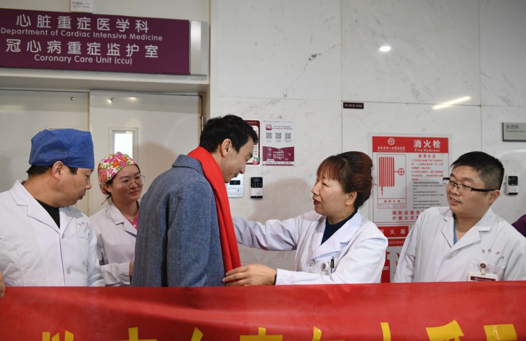 “感谢心脏重症军团:千里奔波两地接力救家乡青年大爱无疆,万分细心多学科合作重获新生华中阜外医院美名扬”。