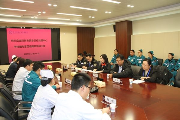 12月19日,郑州市紧急医疗救援中心工会主席赵新珍、医务科科长谢永富、后勤科科长田果、培训科护士长完颜振杰,郑州市第七人民医院急诊科主任李志营一行五人莅临华中阜外医院急诊科开展2019年院前急救工作年终考核。华中阜外医院院领导吕凯声、医务部主任王黎、护理部副主任于漫、综合临床管委会护士长牛红艳、信息中心主任李放、医院感染管理科陈雷应邀出席,急诊科主任郑晓晖教授、护士长白向威及急诊科全体医护人员参加了考核前汇报会议。
