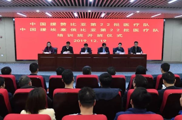 12月19日,中国援赞比亚第22批医疗队、中国援埃塞俄比亚第22批医疗队培训班开班仪式在华中阜外医院举办。来自开封、濮阳等地的44位援非队员以国家利益为重,舍小家为大家,积极投身于国家援外事业。