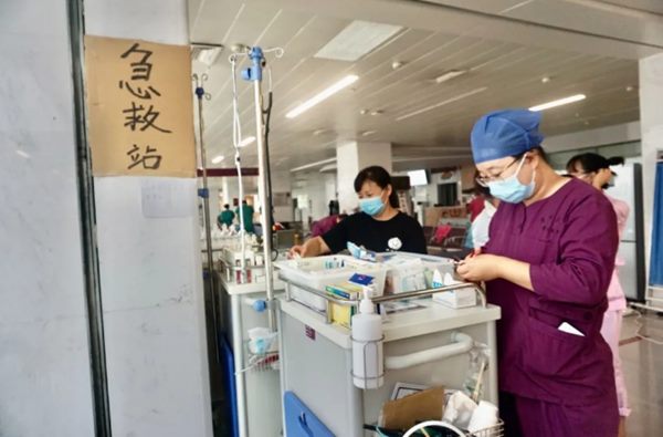 天气炎热,急救站的医护人员处理了不少中暑、腹泻的情况,每天可以接诊约100人次。不管大伤小情,大家都能在门诊二楼的急救站得到第一时间的处理。
