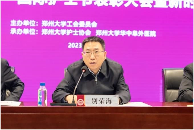 郑州大学党委书记别荣海向辛勤工作在护理一线的全校护士致以崇高的敬意,向受到表彰的“十佳护理管理者”“护理标兵”们表示衷心的祝贺。他表示,护理专业与人类的健康及生命密切相关,在维护和促进健康、减轻痛苦、提高生命质量等方面发挥着不可估量的作用。广大护理人员应积极主动地因势而谋、应势而动、顺势而为,在学科建设、人才引培、科技创新、护教协同、管理运营等方面创新局、开新篇,积极践行推动健康中原的社会责任,全面打造郑州大学护理教学、科研、临床服务特色,为省内外护理专业的改革发展起到示范作用。