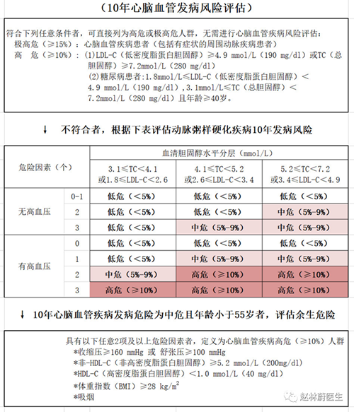 对于未来10年心脑血管疾病预期风险≥ 10%,且经积极治疗干预后仍然有≥ 3 个主要危险因素控制不佳或难于改变时(如早发心血管病家族史),可以考虑服用小剂量阿司匹林(75-150mg)来预防缺血性心脑血管病的风险,具体如下图: