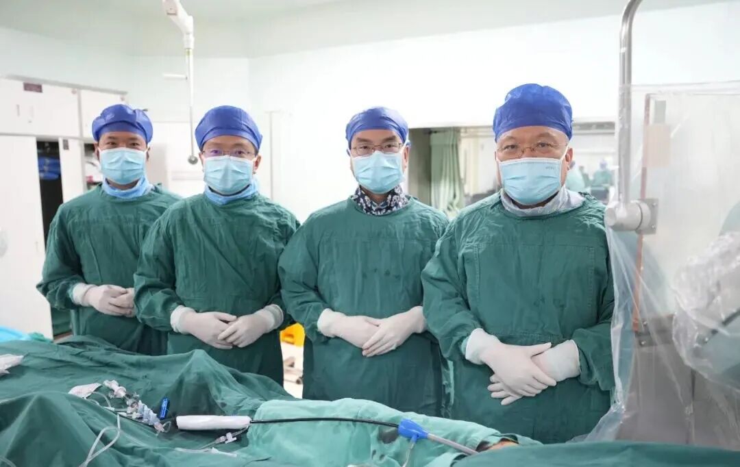 11月28日上午,杂交手术室内气氛专注而有序。袁义强教授带领陈珂、宋卫锋等专家,开始实施这场“毫米级精准”的手术。与传统手术不同,整个过程没有胸部切口,无囊袋、无需全麻,仅在患者大腿根部股静脉进行微创介入穿刺。