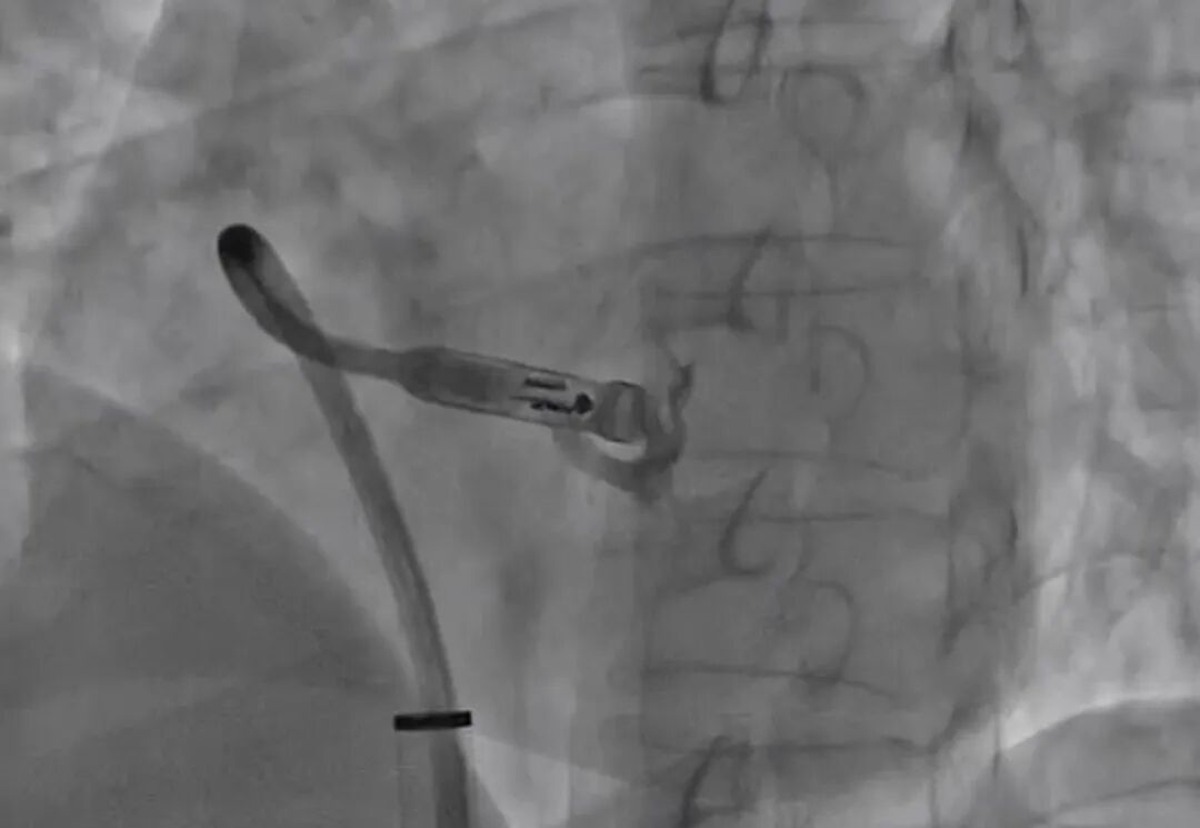 手术团队在超声和DSA的双重精准引导下,将装载着Micra无导线起搏器的输送系统沿血管缓缓送入心脏。它无需导线和皮下脉冲发生器,术后患者不仅可以正常洗澡、运动,还能安全接受核磁共振检查,彻底打破了传统起搏器的使用限制。