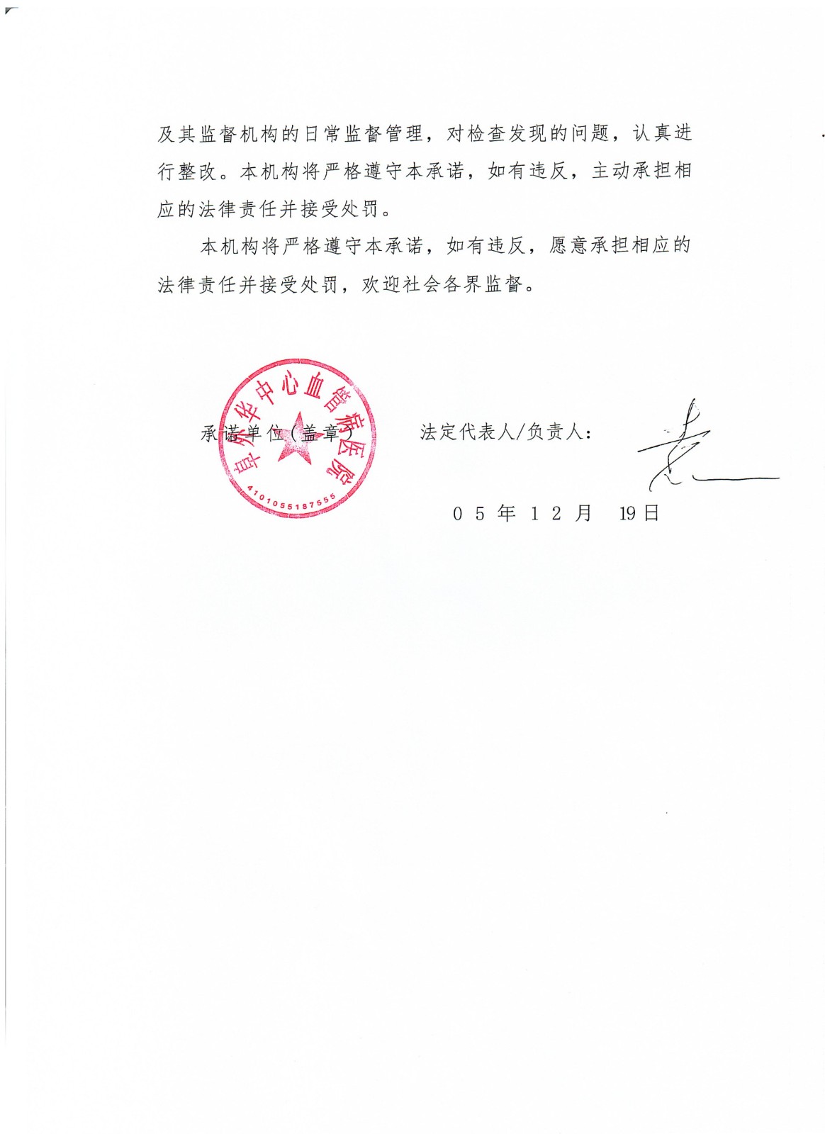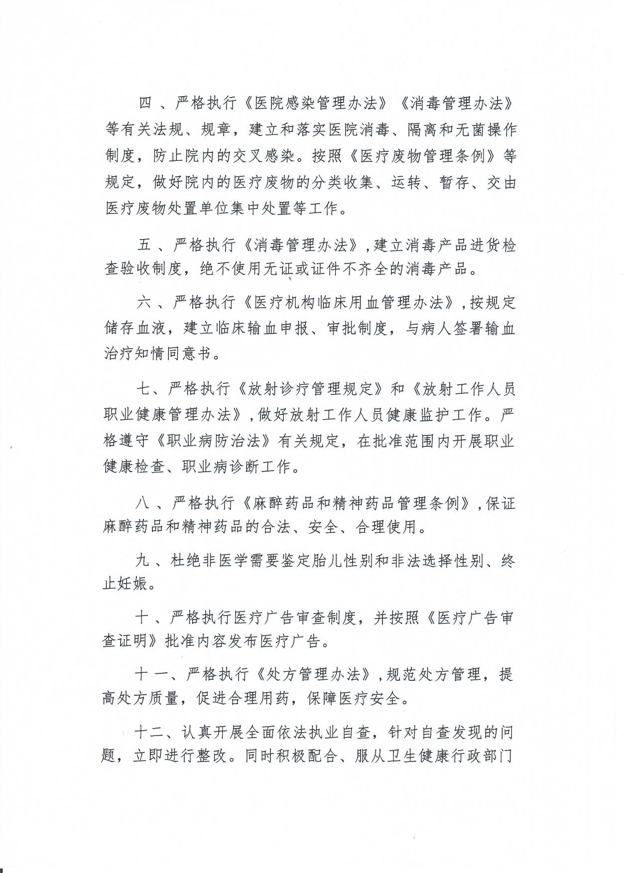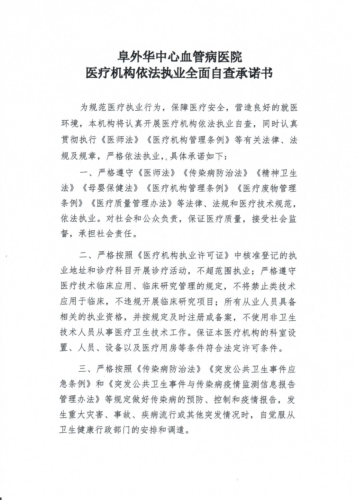阜外华中心血管病医院医疗机构依法执业全面自查承诺书