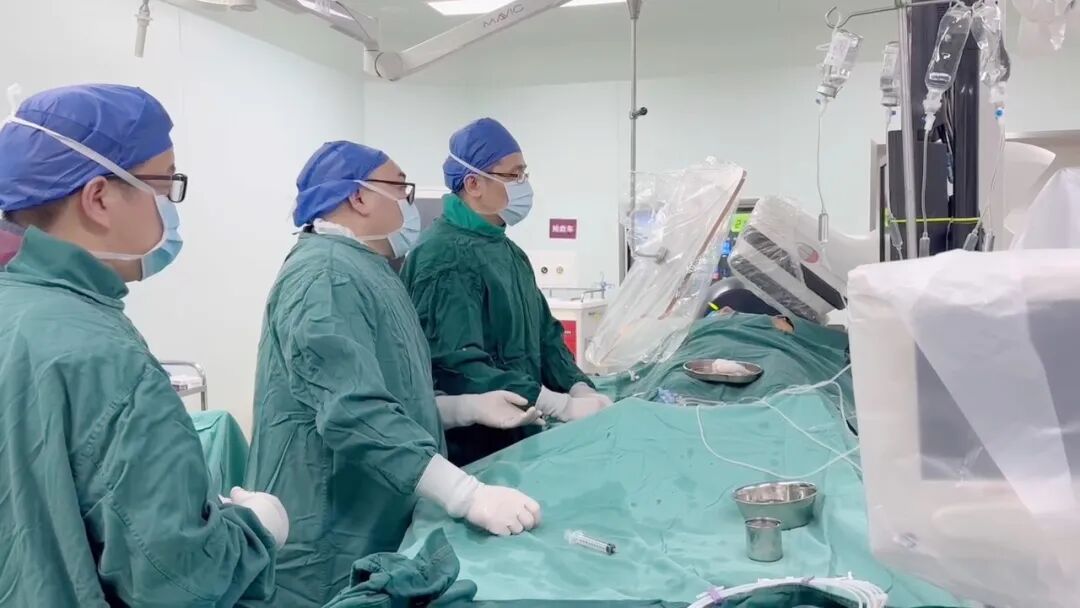 考虑到患者高龄,为减少植入物对身体的影响,团队最终为其植入1枚药物球囊,完成了这场高难度的介入手术。