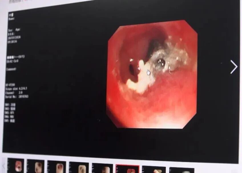 为确保安全,她没有急于操作,而是通过气管镜,用生理盐水反复冲洗异物周围,软化粘连的分泌物,同时小心翼翼地探查异物质地——经过细致试探,确认该异物质地柔软,不会对气道造成严重划伤后,沈艳丽副主任才凭借精准的操控,用专用器械一点点包裹、钳夹异物,缓慢、平稳地将其完整取出。
