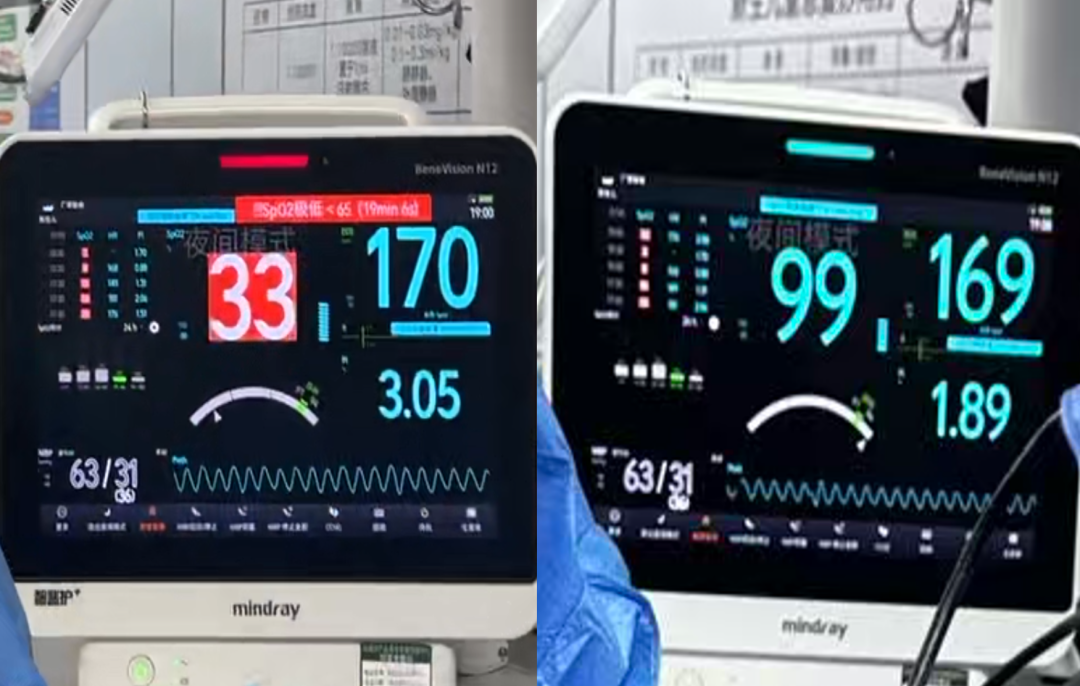 当ECMO运转后,神奇的一幕发生了。在数十秒内,孩子的血氧饱和度从33%,迅速上升到99%。“血氧升起来了,孩子得救了!不愧是国家区域医疗中心的团队”该院医护人员惊呼。