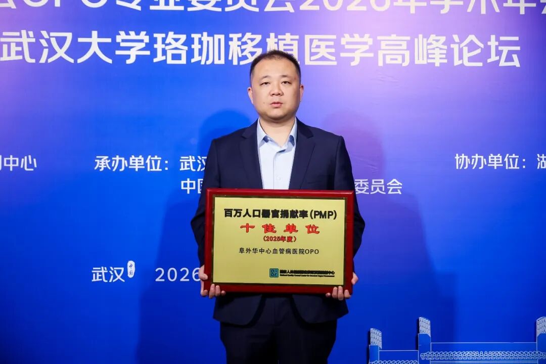 会议期间,阜外华中心血管病医院OPO荣获“2025年度全国百万人口捐献率(PMP)十佳单位”,这代表了国家人体捐献器官获取质量控制中心对我院器官捐献工作成绩的肯定,极大提升了我院行业地位、品牌形象与社会公信力。这不仅是一份殊荣,更是一座城市大爱的见证,是对生命最高的礼赞。OPO办公室主任刘前进上台领奖。