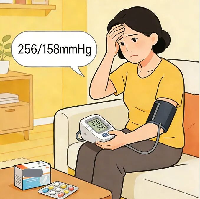 患者为44岁女性,确诊高血压后血压长期居高不下,最高血压竟达256/158mmHg,属于极重度高血压。入院后诊断为原发性高血压,靶器官评估显示患者已出现左心室壁增厚、脑动脉瘤等靶器官损害,若血压持续失控,极易诱发脑出血、心衰等致命急症,生命安全受到严重威胁。