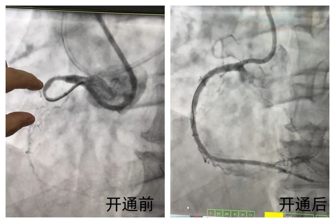 凭借娴熟的操作和默契配合,团队最终成功开通闭塞血管,原本纤细僵硬的血管恢复通畅,管径较术前明显增粗,心肌供血得到根本性改善。