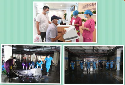 医护跟进做治疗,自愿报名建家园,仪器药品水中浸,淤泥积有“三尺”深,积极清淤做清理,消杀工作持跟进,团结友善共奋进,重建家园壮人心。功夫不负有心人,8月2日开门诊,回报社会怀感恩,挂号病人免收费。
