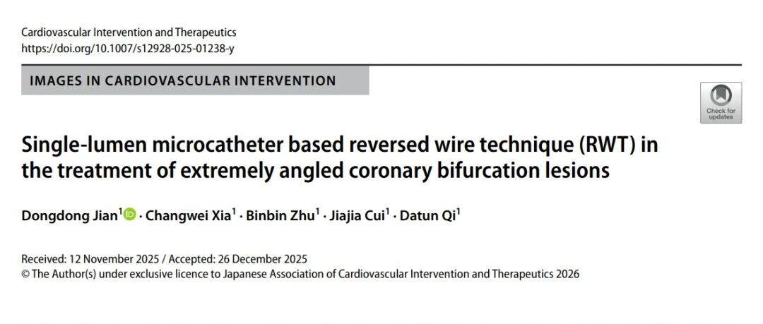 我院专家研究成果登上国际学术期刊,全球首次正式介绍单腔微导管反转导丝技术