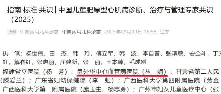 我院专家丛娟参与制定的《中国儿童肥厚型心肌病诊断、治疗与管理专家共识(2025)》发布